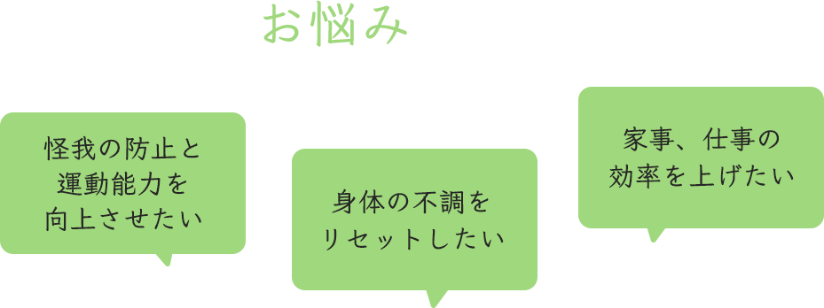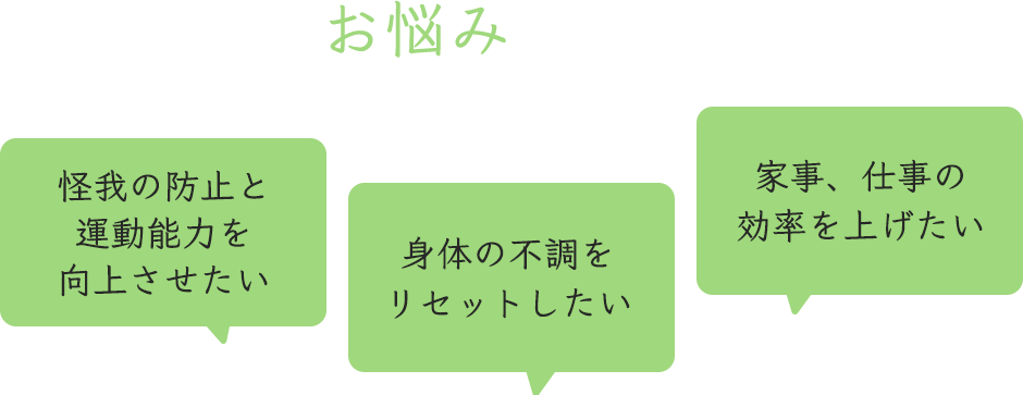 安全性に配慮しながら、お一人おひとりの身体に合わせたやさしいサポートを行っております。